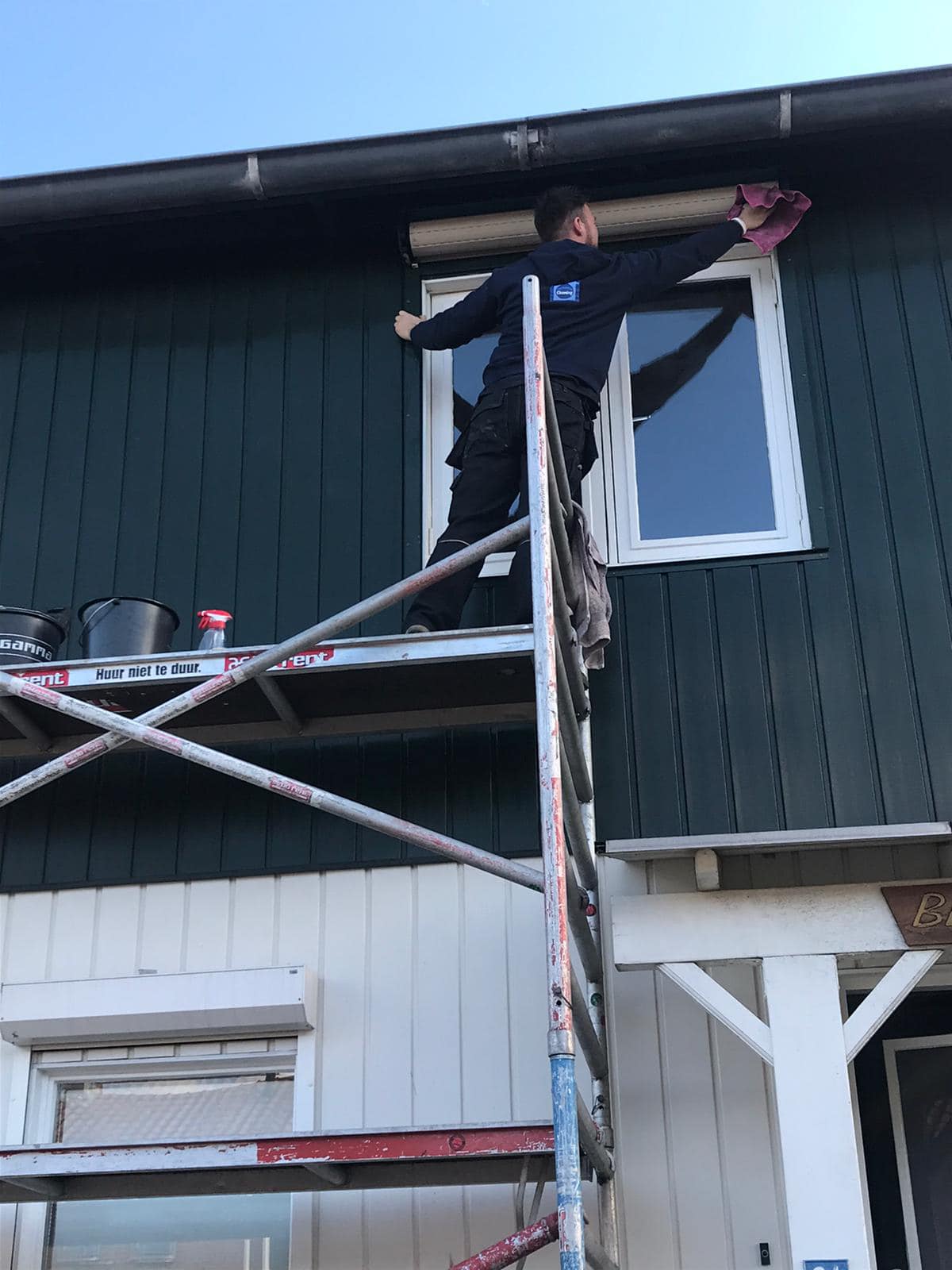 wij maken daarbij gebruik van ladders en steigers om zo op de onbereikbare plekken te komen.
